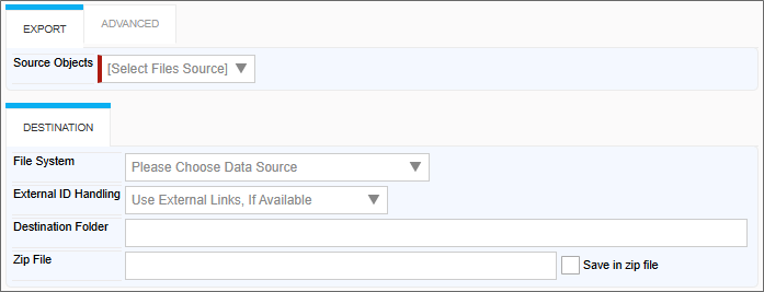 If you select the "Do Not Use External Links (Ignore)" option, you can enter the file path for your export in the Destination Folder textbox. The location must be one specified by the AllowedExportLocations Custom Variable, if the export is set to use a Windows File System folder. For SFTP transfers, the folder path can be set arbitrarily. |