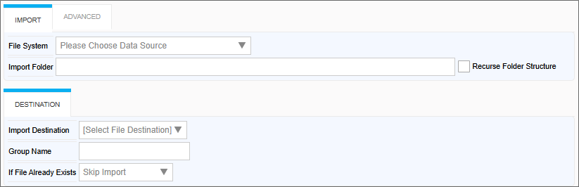 This Custom Task enables a user to import files from any accessible Windows File System folder or SFTP Server folder to Process Director. You can select an import folder on the file system and import all files in that folder, including any subfolders, into Process Director. Alternatively, you can specify filters to import only the desired files from the folder, such as limiting the import to files of a certain size or file type.