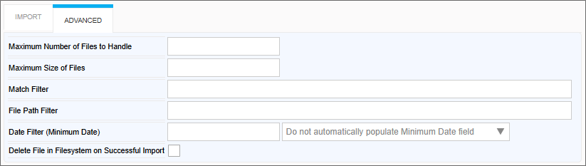 This is a two-part option. The Textbox allows you to specify a minimum file date to import, while the dropdown enables the selection of how to populate the minimum date field. |