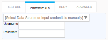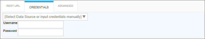 | Username | When manually inputting credentials, the user name for the REST data source. | |