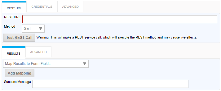 | Test REST Call | Button | When clicked, this button will invoke the REST CALL, and fill in the JSON, XML, and CSV results in the Test Results section at the bottom of the configuration screen. |