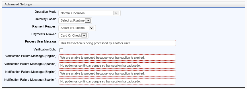 - Response Fail Code = “ERROR (BOA-code)”, where “code” is a Bank of America payment failure code. (See the Bank of America document “Payment Collection Gateway – Testing Information and Checklists – Gateway Solutions User Guide – Version 4.6” for an explanation of the code.)