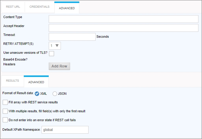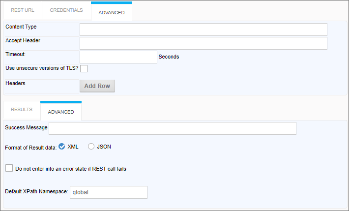 | XML | The XML data returned by the REST call. | This field is filled automatically when the Test REST Call button is clicked. |