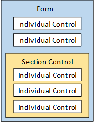 There are also other controls, like the Section control, that determine how information is grouped or displayed by serving as a container for other controls. A Form is essentially a container for controls, and the Section control is, in turn, a container for other controls.