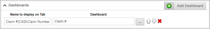 The Dashboard section of the Case Definition enables you to specify a dashboard to use to display the case folder.