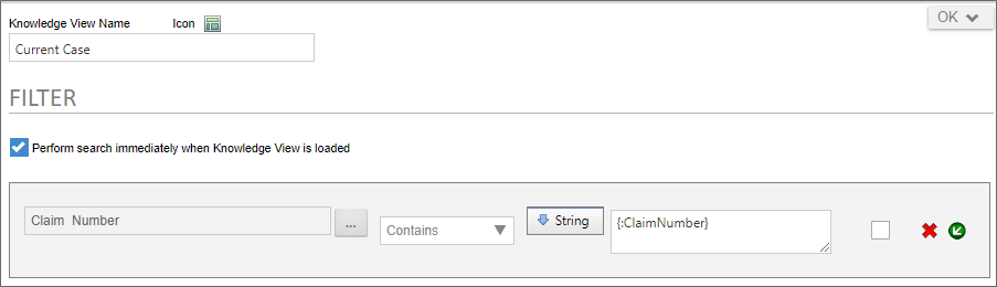 Finally, the Knowledge View's Filter tab is enabled to use Case properties as a Knowledge View filter.