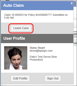 When you are in Case context, the User Profile box automatically updates to track the case that you're in. When you've completed your work on the case, simply click the Leave Case button to exit the Case context.