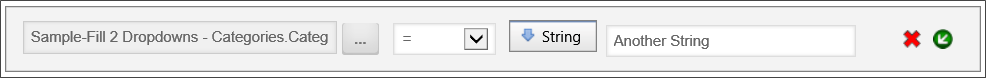 In the example above, the condition requires that the value of the Sample-Fill 2 Dropdowns form field equal the desired string value, "Another String".