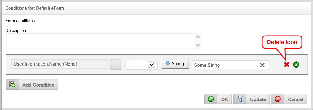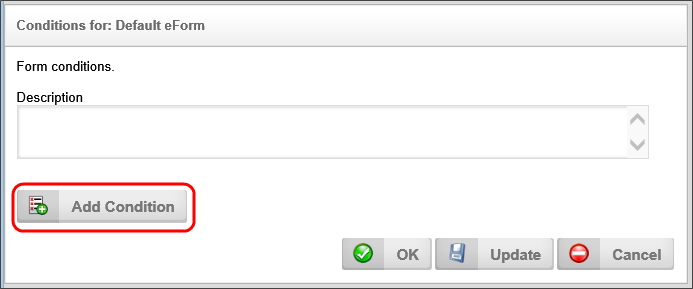 When the Condition Builder has been invoked, you may add a condition by selecting the Add Condition button .