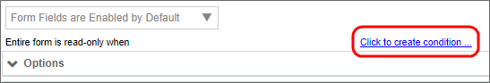Conditions are true or false statements that are evaluated in order to determine an appropriate response. Process Director includes a Condition Builder that enables you to create conditions to test nearly any value you desire. You'll see the Condition Builder in many different places, such as when to make a form field enabled or hidden, or what value to return from a Business Rule. The Condition Builder is usually invoked by an action link that is labeled Click to create condition.... Anywhere you see this link, you can open the Condition Builder by clicking on it.