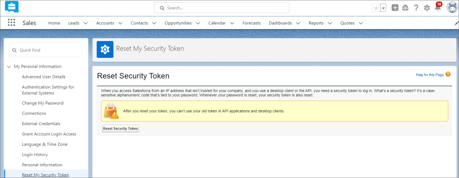- Enter the valid SalesForce Security Token into the Security Token property.