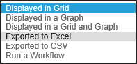 If you want to prompt the user for additional filter data on this Knowledge View when running the report, choose the option "Displayed in Grid" to allow the user to click on the icon to export the results after the filter data is entered.