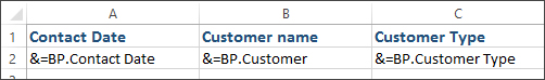 These columns will be filled with data from the corresponding columns (Contract Date, Customer, Customer Type) in the Knowledge View. The column names defined in the Smart Markers must match exactly the column names defined in the Knowledge View.
