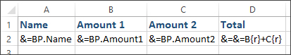 You can also place formulas in columns using the syntax described below, in the Excel Formulas section.