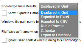 There are two options when exporting the results to a CSV file. First, you can set the Knowledge View Results property to "Displayed in Grid", which is the default option. Second, you can set the Knowledge View Results property to "Exported to CSV", which will automatically save the data to a file on your local computer.