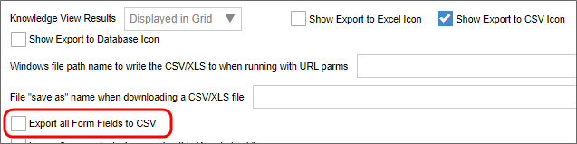Additionally, selecting the Export all Form Fields to CSV option will export all form data, regardless of what is defined on the columns. When this option is selected, all form fields will be exported after the defined columns. This will also cause the default display options for the columns to export only (only the first column will appear on the screen).