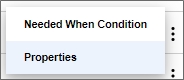 The properties for the Activity can be accessed via the Properties menu on the hamburger menu at the right side of each activity. The Needed When Condition(s) can also be accessed from this menu.
