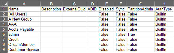 An additional export property, Include Users?, will use the User Export feature to export the users and groups together. In that case, the output will use the Export Users feature to export both users and groups in one spreadsheet. Importing that file into another system will import both the users and groups in one import via the Import Users link on the User Administration page, rather than the Import Groups link on the Group Administration page.