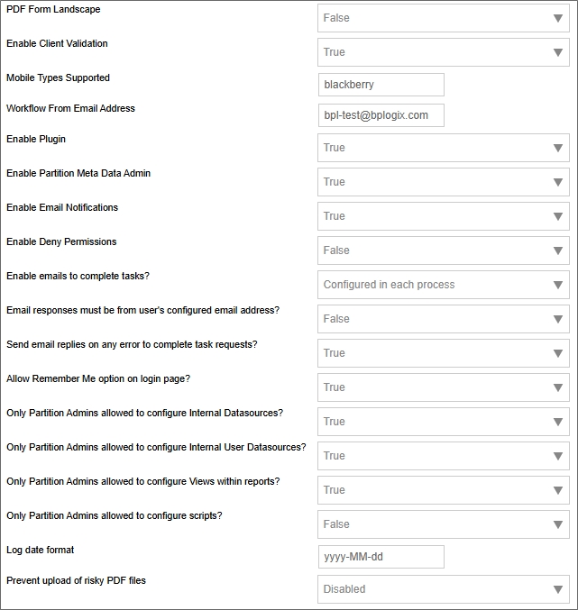 Enables you to allow users to complete tasks via email. This option can be enabled in two ways. Setting this value to "Yes" will enable all tasks to be completed via email. Setting this value to "Configured in each process" will enable process designers to determine whether completion by email should be allowed on a given process.