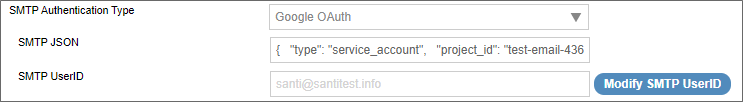SMTP UserID: The User Name for the email account that will be used to send email.