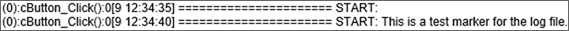 The example above demonstrates two markers. The first marker is the default marker that is inserted in the log file when you click the Insert marker button. The second example is a marker where the following custom text has been inserted: