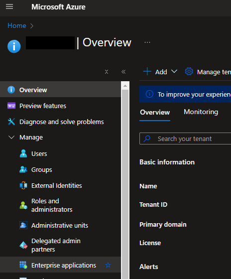 From this page, use the navigation bar on the left side of the screen to navigate to the Enterprise Applications page.