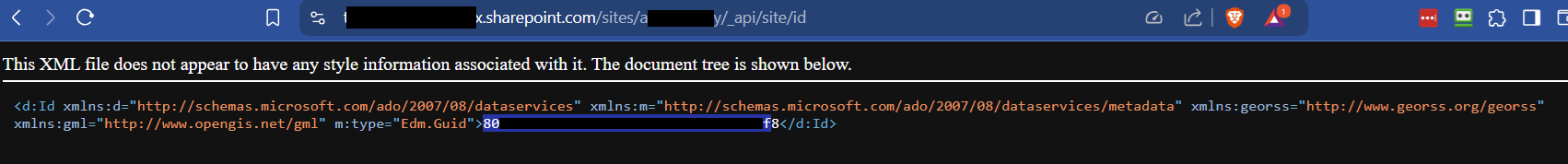 In the example above, the redacted value that's outlined in blue (starts with “80” and ends with “f8”) is the Site ID. Copy this value and save it.