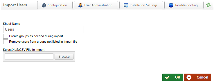 Users can be exported or imported between systems using Excel files (.XLS, .XLSX or .CSV).