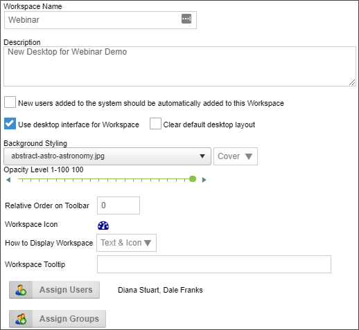 Type in a brief description of the Workspace's purpose and the type of users who should be assigned to it.
