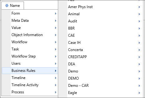 Business rules that you create are added to the System Variables dropdown menu so that the Business Rule can be accessed in any place where system variables are used.