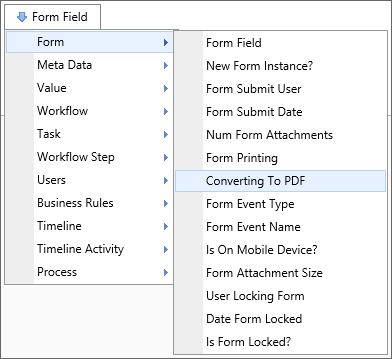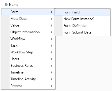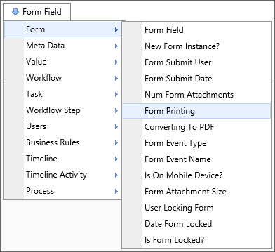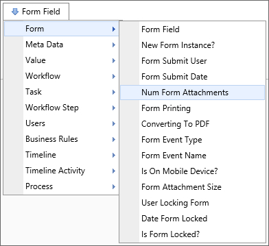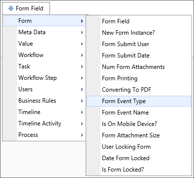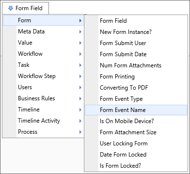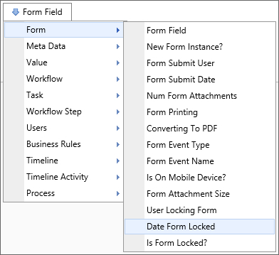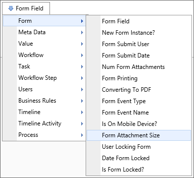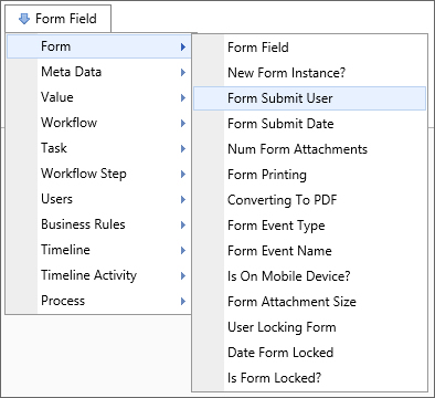 A Form Field system variable will return the value of a specified form field. The data will be drawn from the active instance of the Form. When the form field name is the name of a column in an array, this system variable will return a comma separated listed of the values of all the non-empty fields in that column. To include empty values in that list, set the optional parameter KeepEmptyRows to true.