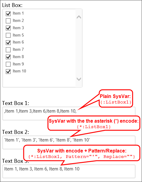Turns off the automatic HTML encoding for system variables used on a Form.