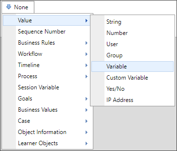 Process Director enables you to create custom variable placeholders by using the generic Variable selector, or the generic {VARIABLE:VarName} syntax.
